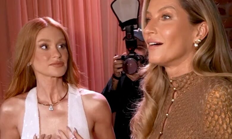O momento mais comentado da noite aconteceu quando Gisele foi questionada sobre quem poderia interpretá-la em um filme inspirado em sua trajetória. Sem hesitar, ela apontou Marina Ruy Barbosa como o nome ideal para o papel, elogiando o talento e a presença da atriz.